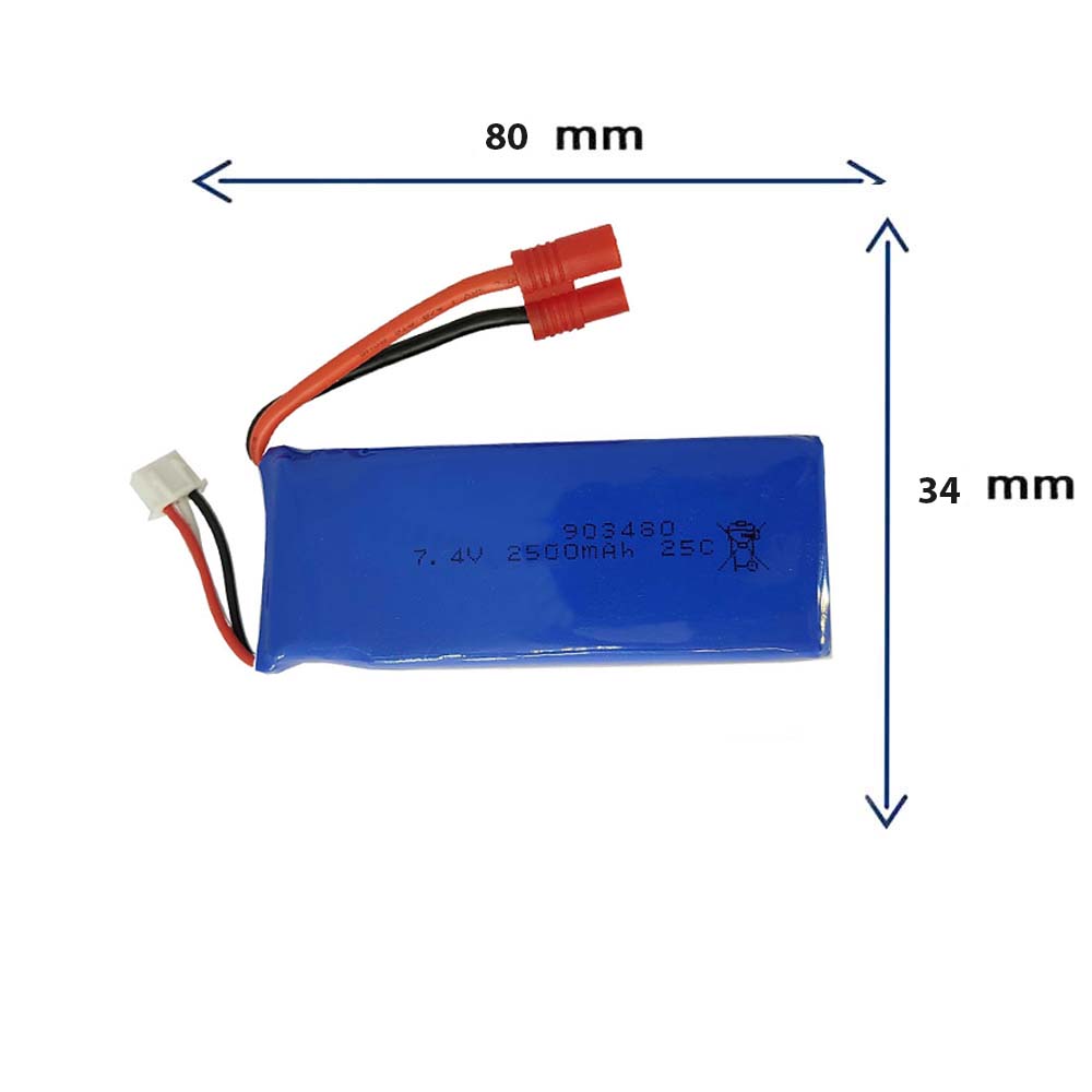 باتری کوادکوپتر و هلیکوپتر 7.4 ولت با ظرفیت 2500 میلی آمپر و ابعاد 903480